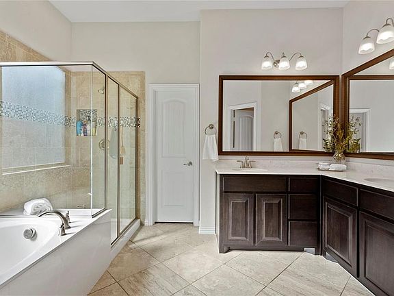 TASTEFULLY DESIGNED 2-STORY WITH SPLIT BEDROOMS & SPACIOUS MEDIA ROOM. **MOTIVATED SELLER** This home is listed at a fantastic price due to easy access to 35, great shopping & entertainment nearby. New flooring installed on all downstairs living areas! The kitchen boasts plentiful countertop space, subway tile backsplash & a breakfast bar. Relax in the family room offering a cozy fireplace. Escape to your master retreat where you can enjoy the oversized shower with seating area, garden tub, dual sinks & walk in closet. Enjoy the gorgeous backyard complete with a covered patio. Buyer & Buyer Agent to verify all info including, but not limited to, room dimensions, features, schools. Pets on a case by case basis.