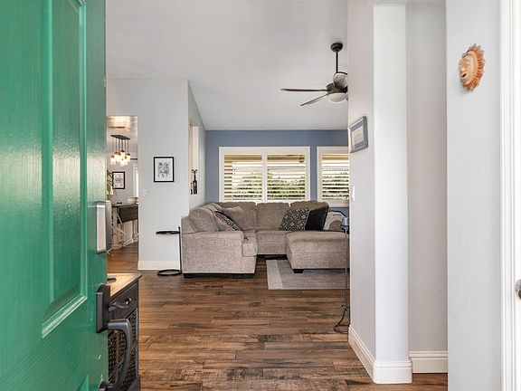 Updated Greens home with island kitchen featuring granite counters, upgraded cabinets, stainless appliances, and new disposal . Owner's suite offers walk-in closet, honed marble bath counters, and upgraded shower. Wood-look porcelain tile floors, plantation shutters, updated paint, lighting, and plumbing fixtures throughout. Renovated landscaping with retaining wall. Built-in garage cabinets. Enjoy two community clubhouses with fitness rooms, recreation areas, pools, and spas.