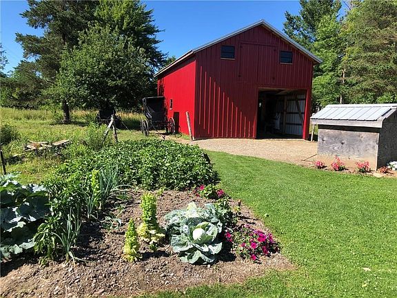 Cozy Amish cabin & barn on 2.5 acres with luscious garden & fenced pasture. Cabin built in 2014, barn new in 2018. Perfect for a small family and a few horses. All furniture, all shelving, hutches attached to the walls, kitchen water pump, sink, cabinet, amish cook stove, hot water kettle, and both detached sheds on skids ALL excluded from this sale unless separately or inclusively negotiated.
