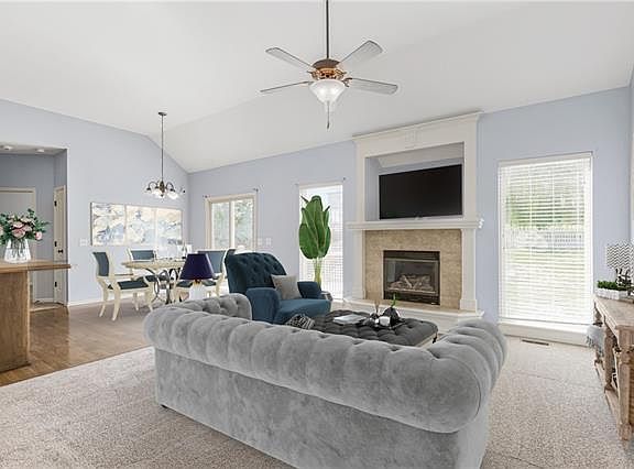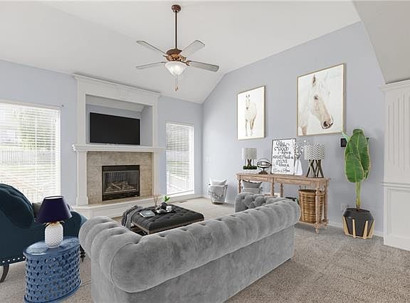- Features: Carpet, Ceiling Fan(s), Fireplace