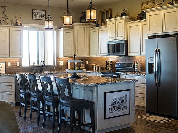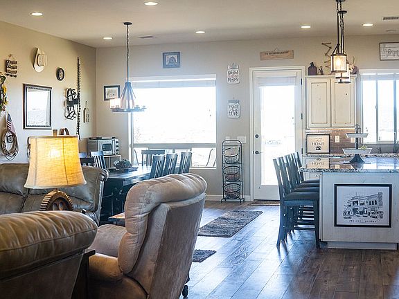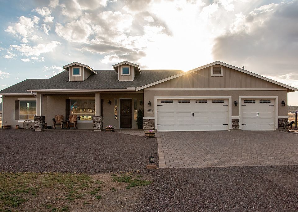 Beautiful custom home on 2 acres in the new subdivision Saddle View with a great well, 15 gpm... Super energy efficient home!!. Enjoy the stunning views of the mountains with the beautiful sunrises and sunsets, no matter what window you are looking out of!!!! Only minutes from downtown Prescott and Prescott Valley!! House has LOTS of upgrades... granite countertops throughout, custom kitchen cabinets, LARGE open floor plan, Large master bedroom, Large walk-in closet and master bath has a beautiful walk in shower and garden tub!! 10ft. ceilings, upgraded flooring, Central vacuum, large laundry room, custom wood blinds, ceiling fans throughout, rock faced gas fireplace, surround sound in great room, back patio and garage, an extra large 3 car garage (36'x26') with lots of shelving for storage plus a 12'x12' shop with deep sink. Rv pad with water hydrant and 50/30/20 Amp plug in. Furniture, appliances ,and riding lawn mover can convey. Solar system is leased. Call for all the upgrades and details to this fabulous MOVE IN READY home!!! Please call 970-676-1149 for further info.