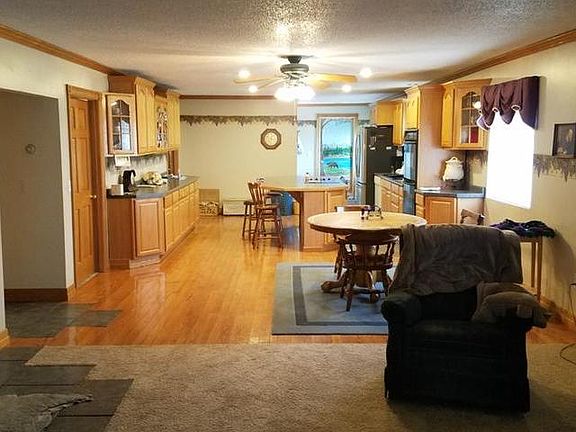 Awesome home in northwest Isabella County. Low maintenance vinyl siding, metal roof, ceramic tile and hardwood floors, open floor plan, ton of cupboards and miles of counter top space including a large kitchen island, wood stove in living room is surrounded by ceramic tile, extra deep garage is finished, heated with a pellet stove and includes a wall of cupboards and sink with running cold and hot water. Property is mostly wooded, has a real nice roll to it, a creek and pond. Enjoy your personal deer camp in the back of the property. Well maintained trail system though out with numerous areas for food plots if desired. There's also a 12x16 two story playhouse that very easily be used an over flow guest house if needed. All listing information/measurements are approx.