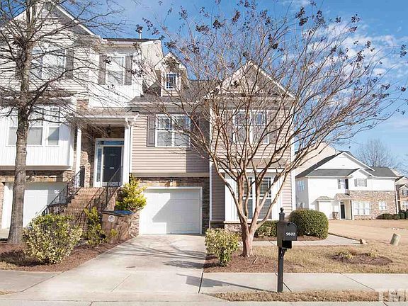 Lovely end unit townhouse in desirable Shearon Farms is back. Open concept home features a private setting, hardwood floors, fenced patio, formal dining room and eat in kitchen with stainless steel appliances. Master bedroom is spacious with trey ceiling. Master bathroom features a garden tub, separate stand up shower and a double sink vanity. Convenient to downtown Raleigh & Wake Forest. Short walk to the community pool. Refrigerator, washer & dryer to convey with full price offer