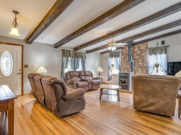 Whose looking for a little country oasis on 4.91 acres? This two bedroom one bathroom home has been well loved over the last 12 years of ownership. From a new roof, to new siding on three sides of the home as well as paint, upgraded appliances that stay with the home, a new well, new windows... the list goes on. This home sits on 4.91 acres with space already dedicated to horses. From the front, you will notice a two car detached garage with the E side containing a garage door opener. Attached to the side of the garage is what they are using as enclosed shed for their mowers, etc., on the back of the garage it is set up for either a dog kennel or already established chicken coop. Headed into the front door, you walk into an enclosed sun deck/mud room. As you walk inside, you will notice a large living room with beautiful beams, and a pellet stove. The kitchen contains an island with plenty of storage and looks out towards the rest of the property. Both bedrooms on the main level are oversized, the one being used as the master has double closets. The bathroom contains a new walk in shower. As you head downstairs, you will notice a large laundry room and two other finished rooms that are non-conforming bedrooms (no egress), and plenty of storage. One other space is framed off, but was never finished. Heading out back, you will notice a covered back porch, with a fenced in space separate of the horses. This little charmer is ready for it's new owners, schedule your showing!