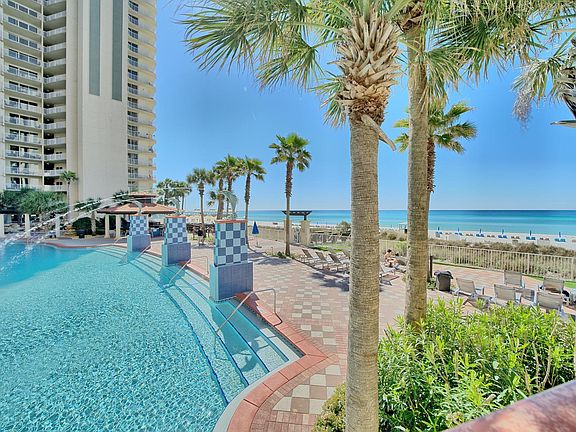 Enjoy full-service resort amenities featuring a stunning Olympic Size Pool, whirlpool, lovely grounds, white sandy beach, 'tiki bar' for drinks poolside. We also have for your enjoyment work-out room, indoor pool, and free parking. Just minutes to Famous 'Pier Park' with shops & restaurants