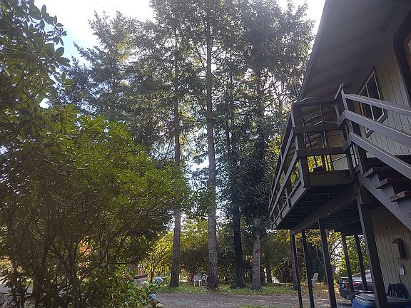 Lovely home on beautiful 1/3 of an acre. The spacious upper 1 bedroom 1 bath has lots of natural light, newer windows and luxury vinyl plank flooring throughout. The covered upper deck wraps around on 3 sides and provides a gorgeous space to enjoy. Downstairs offers cozy open concept living with 3/4 bath and kitchen area. Plenty of parking and a private circular driveway. Also includes 2 sheds, a carport and 2 RV hookups.