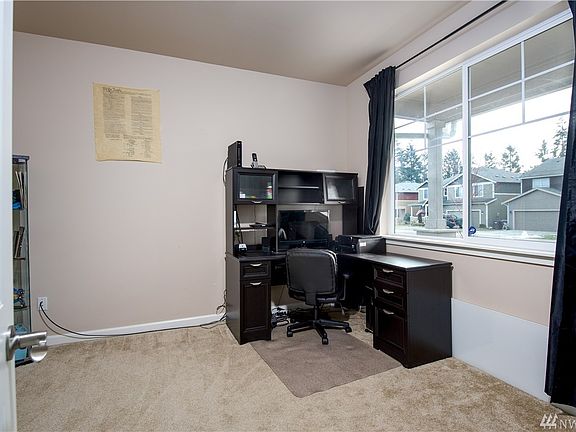 Showplace! Impeccable Newer 2 Story Style Home Featuring a Spacious Kitchen Complete With Beautiful Cabinetry, Slab Granite Counters, Stainless Steel Appliances, Large Island, & Hardwood Floors. Downstairs Den. White Painted Doors & Millwork Throughout, 2 Natural Gas Log Fireplaces. Relaxing Master Spa Bathroom Boasting Granite Counters, Soaking Tub & an Oversized Walk In Closet. Huge Upstairs Bonus Room with Closet. Patio To Fully Fenced Rear Yard. Close To Shopping and Just 20 minutes to JBLM!