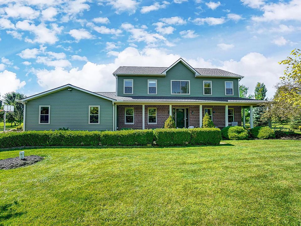 This is the Home you have been Waiting For!!! Wooded lot (Oak & Pine trees) welcomes you to over 3 acres of Peaceful Living! Major updates include: Vinyl siding 2022, Roof 2022, HVAC 2021, Windows 2019, Well pressure tank 2020, Toilets in Primary Suite & Family Bath 2023. Other upgrades: 400 amp electric house, 2 X 6 Exterior Walls (Low utility Bills), 2 car attached garage (insulated & heated), Real Hardwood Floors & 6 Panel doors. Basement Partially finished with Rough In for Full Bath (shower unit & Toilet stay). Battery back up for Sump. Detached 3 car garage 32 x 24 (Insulated, Opener & 125 amp service), Large concrete Patio overlooking Silver Maple & Buckeye Trees! Stream Too! Electric Range, Refrigerator + W/D stay. Built in Basketball Hoop. Concrete Pads at Garages,Storage Shed