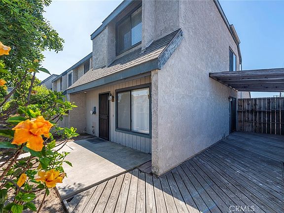 Fabulous Location~ A Very Private and Quiet END unit with Full Sparkling Pool View from the Front Door and the entire walkway leading up to the Entry Area of the unit. Easy Pull-In/Pull-Out, ATTACHED 2-CAR Garage in the Back, with DIRECT ACCESS into the Kitchen. Full size Washer/Dryer Hookups inside your Spacious Garage with ample storage. Large Sliding Glass Door on the side opens up to a Spacious and Private, Covered, Outdoor Deck. Tastefully UPDATED and REMODELED Kitchen with Brand New Oven and Upstairs Full Bathroom. Entire unit has just been FRESHLY Painted, ready for you to move right in. Brand New, Remote-Controlled, Modern Ceiling Fan and Window Treatment in Master Bedroom. Large secondary bedroom overlooking the pool. Livingston Meadows is conveniently located and within walking distance to many markets and grocery stores, Shopping Malls, restaurants, schools and entertainment. Within minutes access to Freeways 22 and 405. Wonderful mixture of Privacy and Convenience.