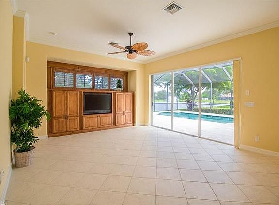 The innovated creators/designers did their best work on this stunning 4 bedrs plus den, 3 full baths, beautiful one story lakefront home. This splendid 2549 A/C sq. ft. home has all the features you desire with over $30,000+ in recent upgrades: wood/tile flooring, upgraded kitchen with premium appliances, gas range, double oven, under lit cabinets, split floor plan, large master bedroom overlooking pool, walk-in closets with contemporary on-suite bath, closet systems in every room, plantation shutters, in-home laundry, 3 car garage with extra storage, & hurricane shutters. The north facing pool/lanai gives you spectacular long water views to relax with a nice cup of coffee. This luxury home was built in 2005 with cement block construction making it quiet, peaceful, and very private. This friendly, gated community, "Rookery Pointe" boasts a beautiful clubhouse/pool for you to enjoy in this estate appointed community. Fabulous location, just minutes to Coconut Point or Gulf Coast shopping malls, restaurants, beaches, and only 10 minutes to the airport. Estero/Bonita Springs is the fastest growing and most desirable area in SW Florida.