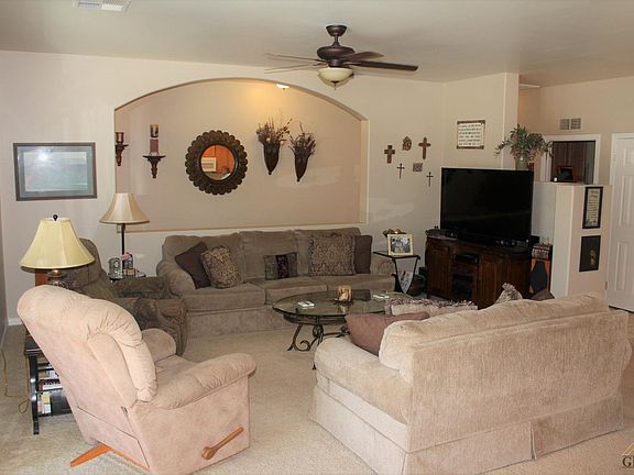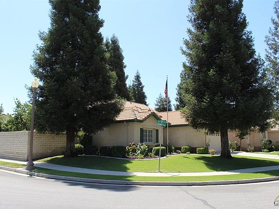 Beautiful gated 55+ private community at the Greens on an over-sized corner lot with 3 bedrooms, 2 baths and upgraded 2 car garage. This property features an open great room with lots of natural lighting, dining area, a lovely kitchen with a pantry and a breakfast bar. There is an indoor laundry room with cabinet space. The master suite has access to the backyard, a full bath with separate tub plus shower and walk in closet with plenty of room to hang your clothing. The 2 car garage includes a granite counter plus sink, lots of storage and finished concrete flooring. The backyard offers a covered patio with fan, river rock and mature trees. A must see!