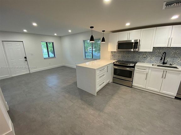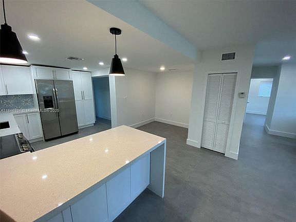 Courtesy of United Dream Real Estate Home has been completely remodeled including both bathrooms, kitchen (with quartz countertops, stainless steel appliances) hurricane impact windows, recessed LED lighting throughout the home, and 30" Italian porcelain tile throughout. Master bedroom is very spacious with large walk-in closet