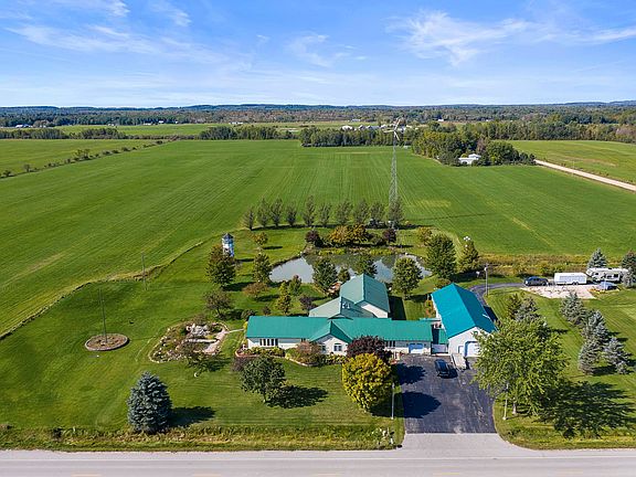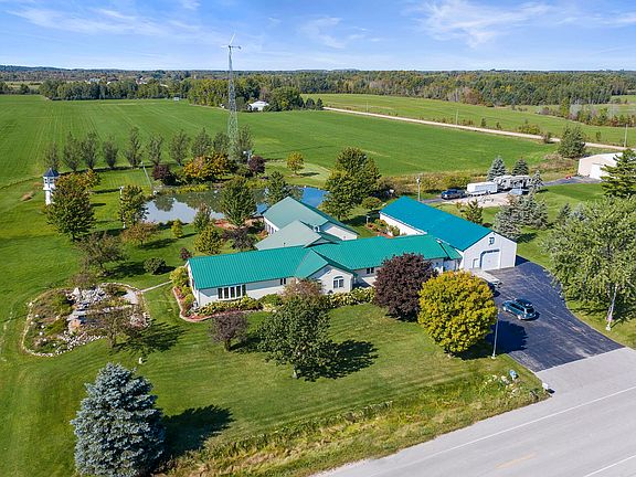 Outstanding home and property! The home boasts several amenities such as; 4 fireplaces, 8 camera security system, central vac, intercom system, heated front porch, 16 zone sprinkler system, whole house humidifier, pelican water system, instant hot water heater, in floor heat, outdoor, smart thermostat, 2 laundry areas, under cabinet lighting, automatic blinds, built in swimming pool, new pool heater/pump, hot tub, pool rumba, lighthouse w/electric, two koi ponds, extra drilled well, heated garages with their own thermostats, full finished basement, Anderson windows, backup automatic generator, 30x84 pole barn, vortex ac system, heat tape on the roof, garden/apple trees, sump pump with back up, whole house surround sound,