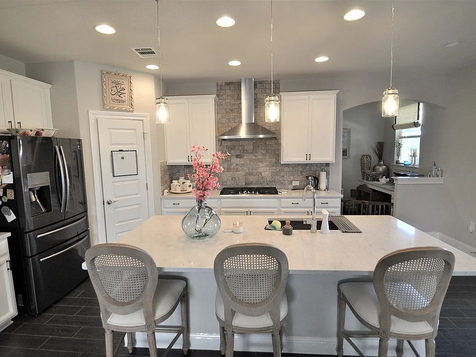 Enjoy Texas sunrises and sunsets from the expansive covered back patio, which overlooks a huge, fenced yard one of the largest in the community! This private outdoor oasis is perfect for weekend barbecues or a quiet morning coffee.
