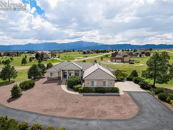 This home is a STUNNER in an amazing location! You get the best of both worlds with 2.5 acres, close to town and amenities. Gorgeous custom stucco rancher with a tile roof, completely landscaped and ready for move in! Home has an open floor plan with wood floors throughout main level except for one bedroom. Master bedroom is large with wood flooring, two-sided fireplace, and 5-piece bath. There is a beautiful gourmet kitchen with gas stove, double wall ovens, grand island, and eat-in area. The kitchen is open to a huge great room that has a built-in gorgeous rock wall that defines Colorado living. Great room has a wall of windows that have an unimpeded gorgeous view of Pikes Peak, and access to a brand-new composite deck! The downstairs has 3 additional bedrooms and a second family room. Additionally, there are 2 huge storage rooms that could easily be finished for additional bedrooms, or any other finished space. Mechanically, this home is stocked as well, you have a well on property, septic system, 2 furnaces, 2 air conditioning units, 2 water heaters, water treatment system for the well, and many, many more! This home has endless possibilities and all the comforts you could ever hope for! Definitely a must see!!!