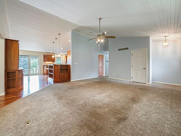 SPACIOUS & SPRAWLING CONTEMPORARY RANCH HOME ON THE CUSP OF EASTERN JACKSON CO OVERLOOKING HILLS HEART OF THE LAKE GOLF COURSE! This absolutely scenic 1.34 acres setting is slightly rolling, filled w/beautiful landscapes, country backdrop & features a refreshing POOL plus an OVERSIZED POLE BARN W/A HEATED ''man cave/she shed''. This is the perfect set up either you're entertaining, combining households, running a home business, in-law suite, foster care, nursing home or just need space, this IS IT! Vaulted ceilings carry throughout the main floor living room & custom kitchen. Ton of extra built-ins, wet bar & pantries galore. Main floor conveniences of private suite & laundry. Finished walkout features a second full kitchen, bdrm w/en-suite & new carpet. 4 Seasons rm. Newer furnace & AC.