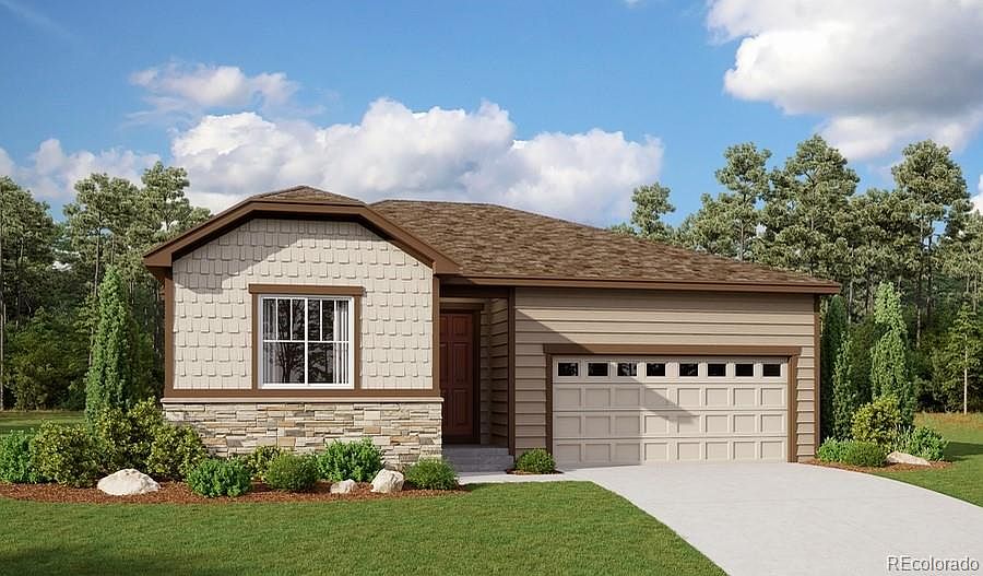 **!!SPECIAL FINANCING AVAILABLE - READY THIS WINTER!!** This Alexandrite is waiting to impress with the convenience of its ranch-style layout along with designer finishes throughout. The main floor offers two secondary bedrooms flanking a shared bath with dual sinks that make ideal accommodations for family or guests. The open layout leads you to the back of the home where a beautiful kitchen awaits and features a quartz center island, pantry and stainless steel appliances. Beyond, the open dining room flows into the welcoming great room with a contemporary fireplace with access to the covered patio, providing indoor/outdoor living ideal for entertaining. The nearby primary suite showcases a spacious walk-in closet and a private bath with dual sinks. A convenient laundry and spacious study completes this home. **CALL 303.850.5757 TO SCHEDULE A TOUR TODAY!**