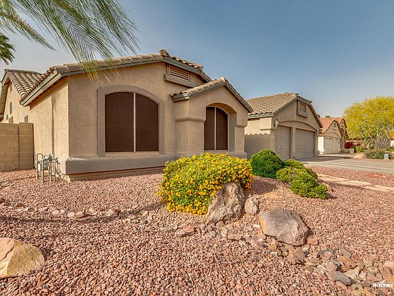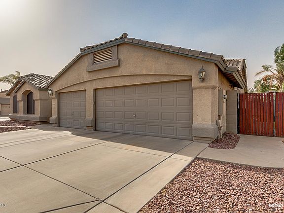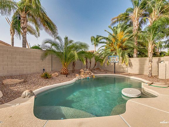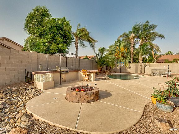 Gorgeous 4 bed, 2.5 bath corner lot property located in Mesa! Featuring 3 car garage, RV gate, and low maintenance front yard. Inside you'll find neutral paint, vaulted ceilings, formal living & dining room, den perfect for an office, and family room. Lovely kitchen with walk in pantry, ample cabinet space, corian countertops, new stainless steel appliances, recessed lighting, plantation shutters, and island with breakfast bar. Cozy master bedroom includes full bath, separate tub, double sinks, step-in shower, walk-in closet, and private exit. Backyard is comprised of covered patio, refreshing blue pool with NEW variable speed pump, firepit, built-in BBQ, and outdoor bar. Sellers just had an energy audit done and spent over $5k in additional attic insulation, duct sealing, and sunscreens
