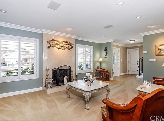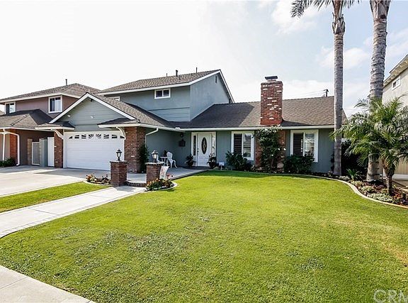 Turn-key & BEAUTIFUL, your home is nestled on a peaceful cul-de-sac, in the enviable city of Fountain Valley! Eat well in the generously sized new white-on-white kitchen with stainless steel LG appliances, sparkling quartz countertops, subway tile backsplashes, large capacity cabinetry with brushed steel hardware, breakfast bar & farm-style sink with industrial faucet. The living room displays sophistication with a floor-to-ceiling marble fireplace facade, lush carpeting & built-in stereo speakers. The downstairs bedroom & bath is currently used as a secluded media room with expertly painted Venetian walls and has a bar with a lavish quartzite countertop & custom hand-hewed sink. Feel the ocean breeze in your massive, backyard tropical paradise with a stone paved patio, firepit, lush lawn & multiple dining & entertaining areas. The outdoor kitchen features a DCS gas grill, refrigerator & additional storage. The garage is fully finished with a new epoxy sealed floor, laundry area with sink, & workout area with a wide-screen TV. The driveway is over-sized with parking space for 3 cars. Additional features of your home include plantation shutters throughout, Paradyme vinyl flooring, custom ironwork staircase handrails, wide crown mouldings & 3 attics for storage. Approximately 4 miles from the beach, your home is conveniently located within a short walk to the neighborhood organic vegetable store, local retail & dining, award-winning schools, area parks and easy f