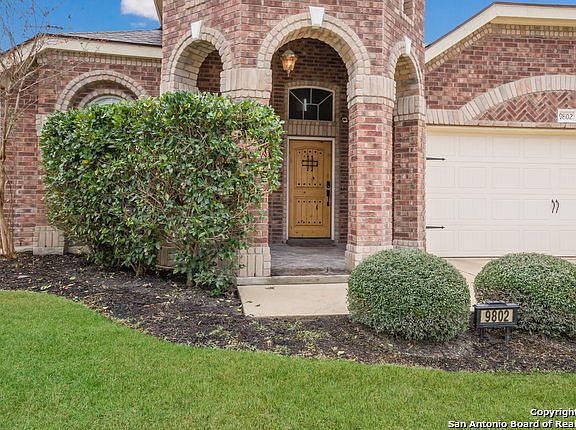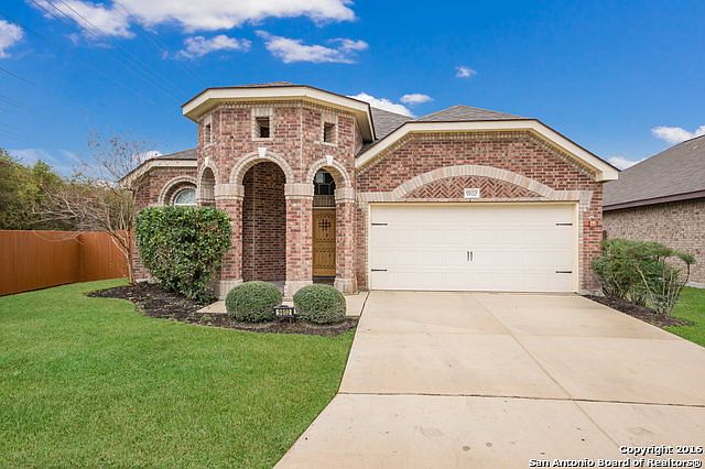 Gorgeous home with all the Bells and Whistles*Great curb appeal with a 4 Arch Dome style front Porch with Stamped Concrete*Wood floors throughout Foyer, Formal dining/Bar, and Living Room*Tile in all Wet areas*Crown Molding in Foyer,Living Room and Master*Travertine In all 3 Niches and Backsplash in Kitchen with decorative Marble Star*Granite in Kitchen and all 3 Bathrooms*42 inch Cabinets*Bigger Designer Baseboards*Super sized walkin Shower*Covered Patio with Stamped concrete*Great location in HELOTES