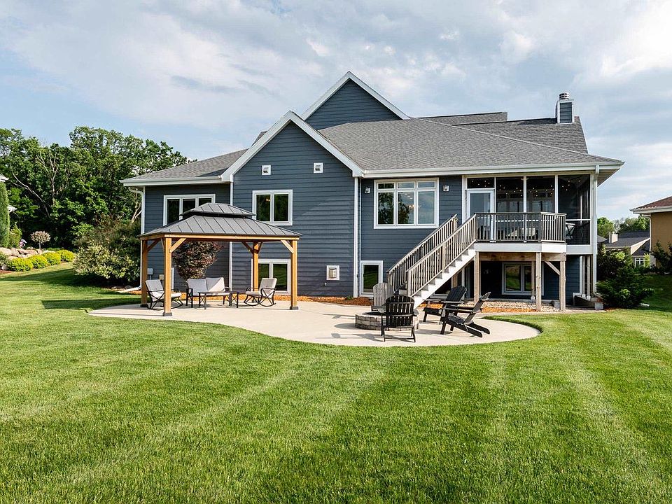 Light and bright this beautifully constructed home offers soaring ceilings, open kitchen with a walk in pantry, Bosch appliances, Decor stove and granite countertops. The adjacent cozy living room with gas fireplace and built in shelving opens to a large screen porch with Trex decking. First floor office, laundry room, owners en suite and spacious mudroom with 3 car garage complete with a central vac and electric car charger. Upstairs offers three with jack and Jill bath and an additional private ensuite with 2 sinks, walk in shower and a soaking tub. Lower level guest quarters with a 3/4 bath, walk out family room and a second gas fireplace. The generous yard has a brick patio and fire pit complete with in-ground irrigation system. 3 blocks to Pope Farms Elementary School