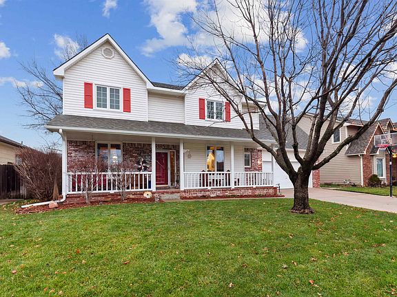 Come see this beautiful two story home nestled in the mature subdivision of Stonegate Estates in the Maize School district. This home offers a 5 Bedroom, 3 1/2 bathroom, and an open layout with the most amazing upgrades. It is truly move- in ready. As you enter the home to the left is a room- sized perfectly for a personal office space, formal living, or even a large piano room. To the right of the entry is a formal dining room with gorgeous white wainscoting on the walls and a detailed tray ceiling. This space connects to the kitchen and is wonderful for overflow when entertaining guests. Opposite the front door is the family/hearth room which opens to the large kitchen. Cooking is so much fun in this wonderful large kitchen with lots of cabinet storage, pantry, and recessed lighting. It features beautiful new Quartz counter tops, and a large island that offers seating and extra storage as well. The eat- in kitchen features a gorgeous bay window overlooking a nice sized yard with mature trees to gaze upon. The floating shelves in the kitchen and window treatments will stay. The formal dining has a gorgeous white decorative Wainescoting on the walls and a detailed tray ceiling. This is wonderful for over flow when entertaining family, guests, or even a private dinner party. The hearth room offers a gas fireplace for cozy winter nights, allowing for family to spread out. It is a very open concept . Enjoy a newer roof, all newer windows on the second story, and a new picture window was also replaced on the main level living room. There are real hardwood floors throughout the main level, and LVP running through the hallways upstairs. The master offers a jetted tub with a new tile surround, double vanities with new Quartz counter tops. It also includes a makeup vanity, and a separate shower/ toilet room with upgraded beautiful floor- to- ceiling tile in the shower. The Master bedroom also features a very nice walk-in closet with amazing vaulted ceilings, adding beautiful character to the room. There are 3 other bedrooms upstairs as well as a full size bathroom with new double vanity Quartz countertops. The laundry room is also conveniently placed upstairs. The Basement offers another large bedroom, bath, open entertainment space, and storage. There is a nice park nearby for kids to play in as well. These homeowners were meticulous with the upkeep and care to this home so don't miss out on the opportunity and schedule a showing!