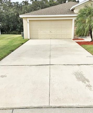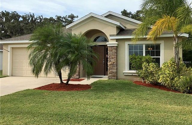 In "The Cove" community at desirable Harrison Ranch, this is a beautiful 3-bedroom, 2-bathroom, "Denison" floor plan home built by Pulte Homes. Set on a semi-private, spacious corner lot, backing up to a nature preserve, facing a park. Gather with friends and family in the large, open family room and Corian topped kitchen areas and breakfast bar, while looking out to the Florida landscaped, partially pavered and fenced-in back yard, and a screened lanai through the 3-door sliding glass doors. Entertain formally in the living/dining room area. The master bedroom has an en-suite master bath with double sinks, garden tub with separate shower, and a private toilet as well as a spacious walk-in closet. You'll truly enjoy how airy this home feels with its 10' ceilings. Comes equipped with hurricane shutters, an irrigation system and a gazebo hot tub. At Harrison Ranch you will truly relish the Florida Lifestyle with amenities such as a well equipped 24-hour gym, a heated junior Olympic pool, fitness center, tennis courts, splendid playgrounds, baseball fields, BBQ pavilion, and a very active clubhouse. Relax walking the 5.5 miles of trails and get close to nature again. Enjoy the convenience of being minutes from great shopping and restaurants. Being close to I-75 you will be about 30 minutes from the beaches of Florida's Gulf Coast, and 45 minutes away from cultural venues of Tampa/St Pete or Sarasota. Priced right, with a 1-YEAR HOME WARRANTY, NO CDD DEBT, IT HAS BEEN PAID! (O&M is what is listed under CDD).