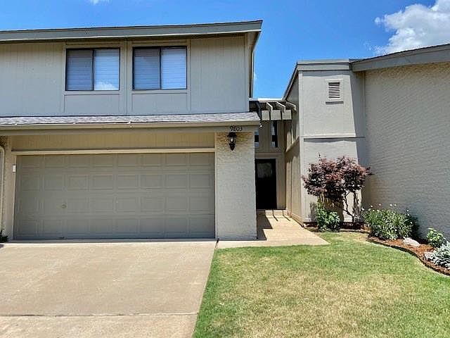 We have a beautiful 2 bedroom 2 1/2 bath 1601 square foot Townhouse with two car garage for sale. This home is completely updated with hardwood floors and ceiling fans throughout. Beautiful updated kitchen. A large living area with a vaulted ceiling and a fireplace off the dining area brings unity to the rooms. All bathrooms are updated. All bedrooms have large walk-in closets; this unit has tons of storage along with attic access. The second bedroom is large and could be second master. The large master suite has a vaulted ceiling, lots of natural light and an upstairs sun deck with black wrought iron railing overlooking the backyard. The back yard grass has been replaced with artificial turf. This home is an O G & E weatherized smart home, great utilities The home owners association cares for two in-ground pools, two tennis courts, a beautiful club house (CH can be rented for private use), nightly security patrols, lawn maintenance