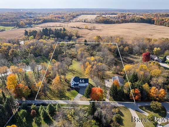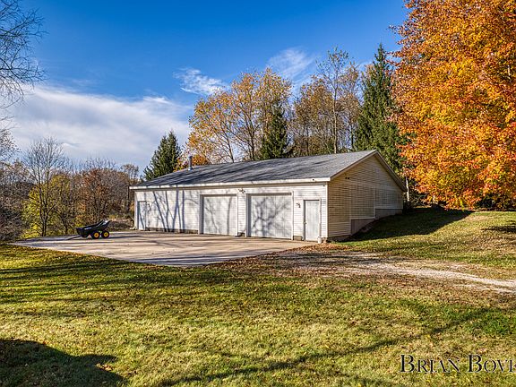 Discover the perfect blend of elegance and functionality in this stately home set on 5 acres of rolling hills and mature trees. This stunning property includes a fully-equipped 40x50 outbuilding with a bathroom, heat, and electricity, ideal for hobbies, storage, or a workshop. The main living area is centered around a double-sided fireplace, creating a warm and inviting atmosphere, while large windows flood the space with natural light and offer breathtaking views of the surrounding nature. The upper level boasts 4 spacious bedrooms, including a luxurious primary en-suite with soaking tub, 2 bedrooms and full bathroom and the 4th expansive bedroom with dormers and large walk-in closet. The walkout lower level features a large rec room, a laundry room, and a unique finished workshop/multi- use space with stairs up to the garage and double doors opening to the outdoors, offering endless possibilities. Embrace the beauty and versatility of this extraordinary homeschedule a showing today and make it yours!