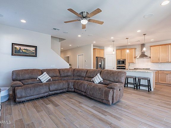 Stunning 2023 Built Eastmark home with over $225K in upgrades inside and out. This meticulously designed property features wood-like tile flooring, upgraded carpet, and textured walls throughout. The low-maintenance landscaping, complete with palms and pavers, leads to a backyard oasis with a custom pool, covered patio, and turf. Inside, enjoy a chef's kitchen with stainless steel appliances & granite countertops, and a dedicated work-from-home space. The master bedroom offers a luxurious spa-like experience with an oversized walk-in shower, dual vanities, and a large walk-in closet. Additional highlights include a loft, a 3-car garage, and energy-efficient features. Located in a quiet community with mountain views and parks nearby, this home is a perfect blend of luxury and convenience.