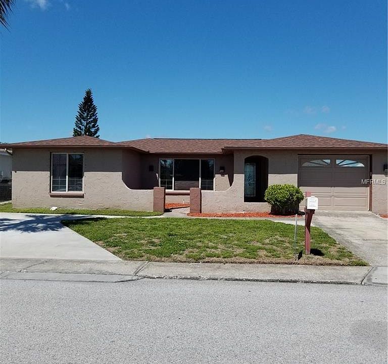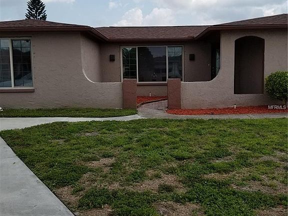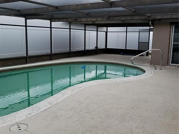 El Dorado model home built in 1979. Solar was installed in 2019. Open floor plan, with large living room going out to the pool. Living room, family room and master bedroom has sliding glass doors to pool area. Lanai is approximately 1800 square feet, includes large covered entertaining area. Pool graduates to 6 feet. Pool is in very good shape. Great for entertaining. New pvc privacy fence with gate on one side at front. Home has approximately 7 year old central heat and air system, 6 year old shingle roof, and 6 year old laminate flooring throughout home except bathrooms. Bathrooms have been updated. Circular kitchen with 4 seater counter. Master bedroom has built in shelves, guest bedroom has built in shelves and cedar closet walls. Sprinkler system is as-is and unused. Garden entryway and a spacious 1 car garage with automatic garage door opener. Spacious wood workbench with lower deep shelf for your use. Washer, dryer and utility tub conveniently located in garage. No deed restrictions/HOA. Bring your motorcycle or RV, plenty of parking. Spacious 1 car garage plus 3 car driveway. Bring your boat. Minimal back yard; room for pets to run on 3 sides. All mulch areas have been replaced with rock.