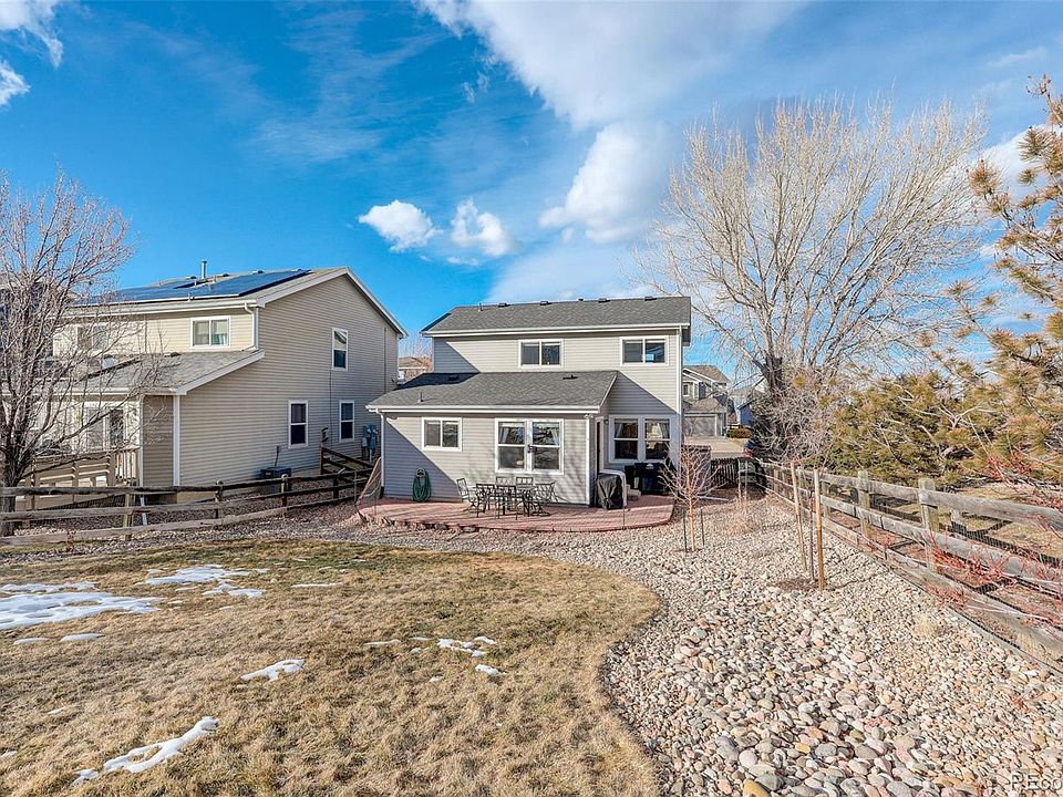Stunning turn key home in the heart of the established community of Roxborough village. Upgraded and immaculate throughout with no details missed. The main level boasts a beautifully upgraded kitchen equipped with high end smart appliances, pantry and a dinning area with easy access to the back yard. Generously sized family area perfect for entertaining, main floor bath and upgraded laundry area with new custom cabinets. All new plank style ceramic floors, new lighting, fresh paint and baseboards round out the main floor living. Upstairs you will find the primary suite/bath with a nice sized walk in closet and 2 additional bedrooms and bath with quartz counter top. The fully fenced backyard has been completely redone with new landscaping, garden area and sprinkler system. Low HOA and low taxes. The community offers a park, many walking trails, a large lake area and views of the foothills and mountains. Close to 470, Chatfield state park and easy access to the mountains. Feeds in to top rated Douglas County schools. Don't miss the opportunity to call this your home.