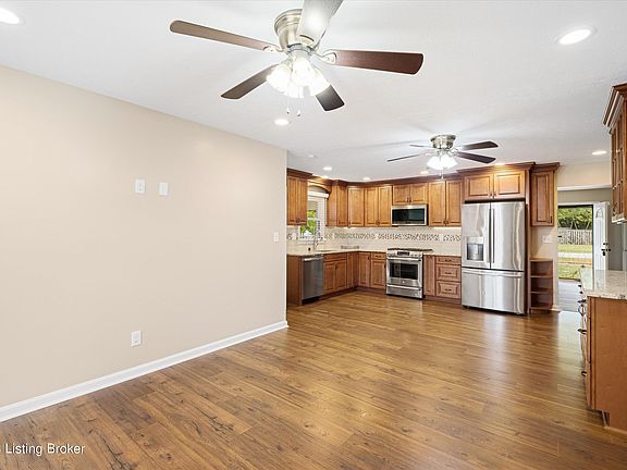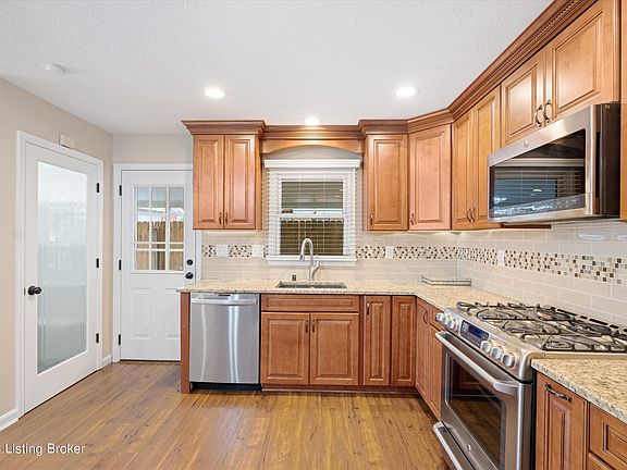 This brick ranch in the Meadowgate neighborhood of Lyndon offers the best of single story living. Fresh paint & new LVP floors throughout. Kitchen has been fully updated with top of the line finishes which include beautiful custom cabinetry, subway tile backsplash & premium stainless appliances. In addition to the ample cabinet space there is a large walk-in pantry. 3 generous sized bedrooms, one of which features an en-suite half bath & there is also a well appointed hall bath. Enjoy 2 comfortable living spaces with a sunny living room in the front of the home & a family room space that adjoins the kitchen and dining area. Outside is a large pavered patio, providing a peaceful place to enjoy the outdoors. The oversized 2 car garage and 1 car carport add to the amenities of this home.