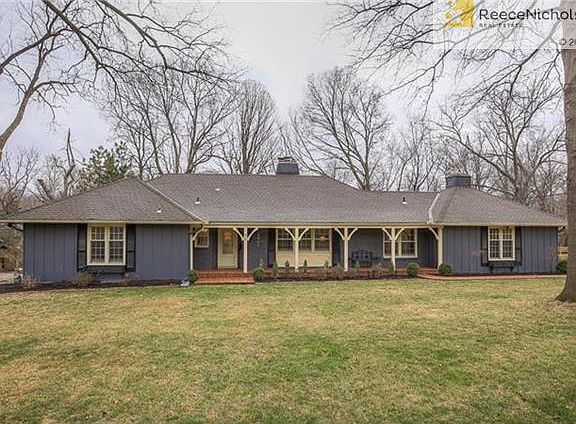 Tucked into one of the best blocks in Old Leawood, this open and airy ranch home has it all! Beautiful hardwood floors and upgraded trim, updated sunny kitchen with white cabinets and granite, rollouts, stainless appliances. Kitchen opens to vaulted family room or large dining area with farmhouse chic appeal- stacked stone fireplace, whitewashed beadboard vaulted ceiling and a wall of windows overlooking the private backyard w/sprinklers and brick patio. Updated baths, master has a tiled walk-in shower and granite double vanity with loads of storage. Main level laundry is ultra convenient. New Anderson thermal windows with plantation shutters. Finished lower level with 2 nonconforming bedrooms, perfect for guest plus a large 3rd bathroom with shower. Large family room is great for entertaining family and friends. Perfectly tidy landscaped yard backs to trees for great privacy. Completely renovated and modernized, no projects here... this home is ready to move in relax and enjoy!