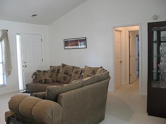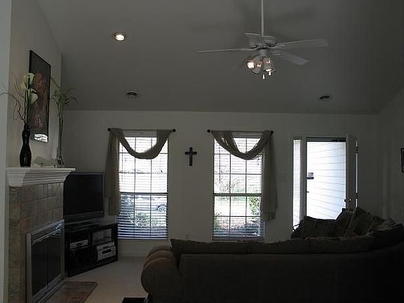 This house has been made ready for YOU! Repainted neutral throughout, clean carpets, all kitchen appliances convey. Fenced yard backs up to private lot. Fresh landscaping. Master bedroom is huge and has two closets. Cathedral ceiling in dining room adds drama. Fireplace is framed by beautiful custom tile. Wired indoors & out for surround sound. Wooden storage shed, workshop bench both convey. Amenties include neighborhood pool membership.