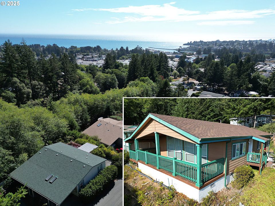 Ocean Views and Quiet location in a 55+ park. Discover this very well maintained 2007 manufactured home, nestled on a hill, just minutes from the Ocean, River and Port of Brookings-Harbor. Enjoy the ocean views from your living room window or unwind on the spacious covered porch where you can enjoy coastal weather year-round. It’s the perfect spot for a cup of coffee or glass of wine. The moment you step inside, you will be enamored with the vaulted ceiling and windows with views of the beautiful outdoors and the sunsets over the ocean. The open-concept layout flows effortlessly, making entertaining a breeze. The ample kitchen comes complete with new stainless-steel appliances, spacious pantry and eating bar. From the kitchen step into the roomy laundry room with ample storage and newer Washer/Dryer. The primary bedroom includes a walk-in closet and its own ensuite bathroom. New roof in 2020. Recent Home inspection performed. Two car carport plus one additional parking space. SELLER IS MOTIVATED!