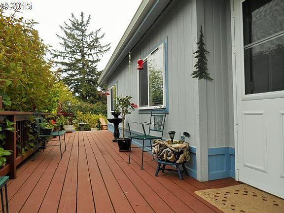 Great location. Close to beach & Port of Brookings, 2bed/2bath, master/bedroom with walk-in closet. Well maintained, all appliances included, new stainless steel stove and over stove micro. Great landscaped yard with wrap-around deck & patio, curbs, & sidewalks. Extra bonus room used for workshop, office, craft room. Cathedral ceilings, textured walls with warm earth tones. Heat pump, central air, and air purifier. Home in 55+ park.