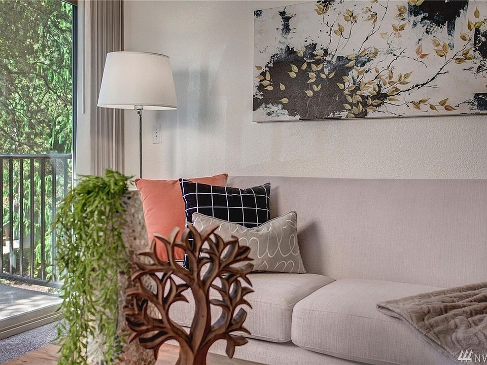 Welcome to Verano Condos conveniently located off 520, minutes to MS, Redmond Town Center and Marymoor Park! This spacious top floor & corner unit features new carpet, fresh paint, tankless H2O! Living room w/gas FP off to balcony. Large laundry room for extra storage. All SS appliances, breakfast bar. Spacious master suite w/extra vanity. No rental cap & strong run HOA. Clubhouse, playground, sport court, & pool! 2 parking spaces+storage unit. Excellent Lake WA SD. Great value & Move in ready!