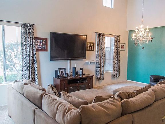 This beautiful home is located in the desirable Crystal Ranch neighborhood in the Northwest, conveniently close to great shopping and dining, and features 4 bedrooms, and 3 bathrooms! The floorplan features a formal living room, as well as a separate family room complete with a beautiful stone fireplace. The kitchen is very open and spacious, and features an island with a breakfast bar, plenty of cabinets for storage, stainless steel appliances, modern lighting, and a dining nook! The spacious master suite features a mosaic tiled shower and a separate tub, as well as double sinks. The backyard features a covered patio complete with a ceiling fan, a bar for seating, and a built in barbeque perfect for entertaining during the Bakersfield summers. It also features a stunning gated pool complete with a rock waterfall! Additionally, this home features a 3-car garage, and a bonus area under the stairs. Don't miss out on your chance to view this fantastic home!