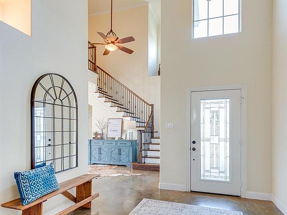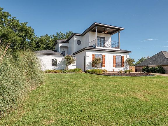 VERSATILE HOME in Pecan Plantation golfing community is perfect for a family, kids, and work-from-home professionals. Courtyard entry offers privacy and security. Soaring ceilings in entry hall and living area; stained concrete & scraped hardwood floors. Iron balusters, designer sinks & plumbing fixtures. Handsome stone woodburning fireplace. Strategically placed windows invite natural light. Roomy kitchen with island and breakfast area. Nice walk-in pantry. Granite counters. Main floor Master bedroom with access to courtyard. Study-office could be a 4th bedroom. Panoramic views across Brazos River from balcony. Fantastic outdoor living space. Large fenced lawn. New roof, paint & shutters. Sprinklers. Come see!