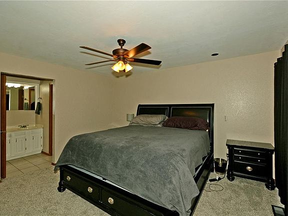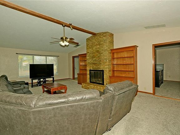 Move in ready home with brand new carpet, only installed last week, and interior paint throughout! New oven and dish washer in kitchen. Ceiling fans in every room and a huge living room with a vaulted ceiling. Master bedroom has sliding doors that open up to the back patio. Backyard has a separate fenced "dog run" and shed. Smart Home Vivid Alarm System stays with the home!