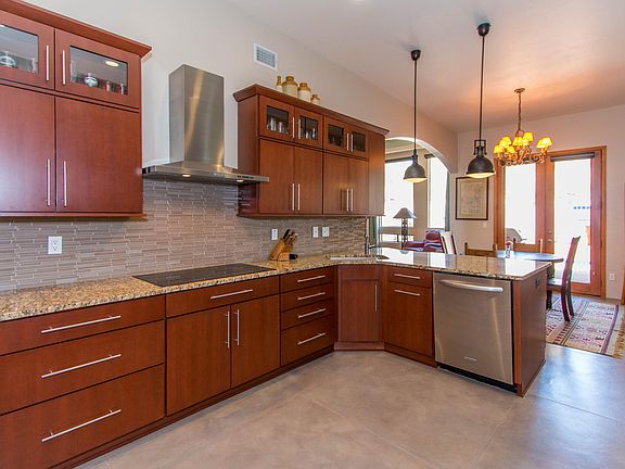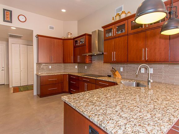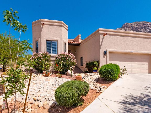 Beautifully updated townhouse situated on the ridge above the El Conquistador Resort with spectacular views of Pusch Ridge and Oro Valley. This home has been completely renovated and features an entirely new kitchen with SS appliances, granite, and full height glass backsplash. Polished concrete floors throughout lend continuity to the Spacious Open floor plan with split bedroom layout makes it easy to escape to the very private master suite.The third bedroom/den features custom built-in cabinetry and makes an ideal home office or perfect sanctuary for relaxing while enjoying the game. This home is move in ready and will not disappoint. Exterior and interior painted 2014. New HVAC and 50 gal water heater 2015.