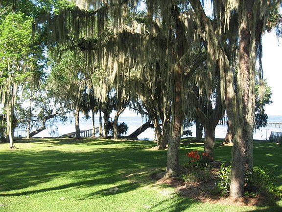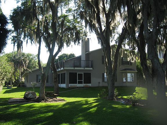 100 feet of beautiful Lake George frontage-Florida's second largest lake! Home features two master suites plus extra bedroom on lower level, two additional bedrooms, balcony and bath plus sitting loft upstairs. Enjoy the sunrises from the open kitchen/living room/dining area w/bay window overlooking the lake. Formal D/R, screen room, inside laundry, 2 car garage. Zoned central heat & air, lots of cabinets and closets throughout. Ramp, dock, seawall and boathouse! Nicely landscaped fenced yard with double entry gates.