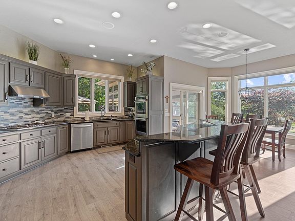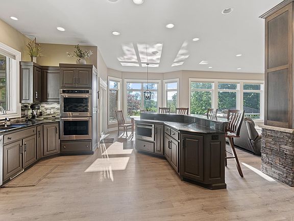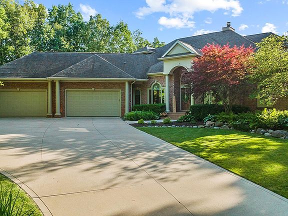 Privacy, Views, Location, updated Executive custom home with 4980 sq ft. You will love sitting in the hot tub or soaking in the in-ground pool overlooking beautiful sunsets or fishing in your own private pond, or relaxing in your gazebo. Plenty of space to entertain large groups while watching football games on your 110" projector screen with theater chairs. Outstanding amenities include, full private first floor office, formal dining room, great room with full brick fireplace, new commercial-grade laminate flooring and new carpeting in 3 season room. Kitchen features new Kitchen-aid double oven, drawer microwave and built in French door refrigerator along with custom cabinets and granite countertops. Gas cooktop with 5 burners, Kitchen-aid vent. Master on main level with newly updated ensuite with tile floor and shower, dual shower heads, soaker tub, quartz countertops with dual sinks, 2 walk in closets tray ceiling and large windows so you can appreciate the beautiful views. Upper level has two bedrooms each with walk-in closets and provides custom vanities and Corian countertops plus a large family room. 4 car garage with a new heater and floor drains, two attic spaces with 1200sq ft of storage, basement has large mechanical room perfect for a workshop!! See attached sheet for additional extra's. Sellers have put over $250000 (made more updates) back into the property since purchasing .