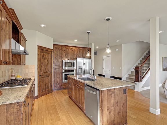 - Features: Builtin Range, Dishwasher, Island, Pantry, Free Standing Refrigerator, Granite, Wood Floors