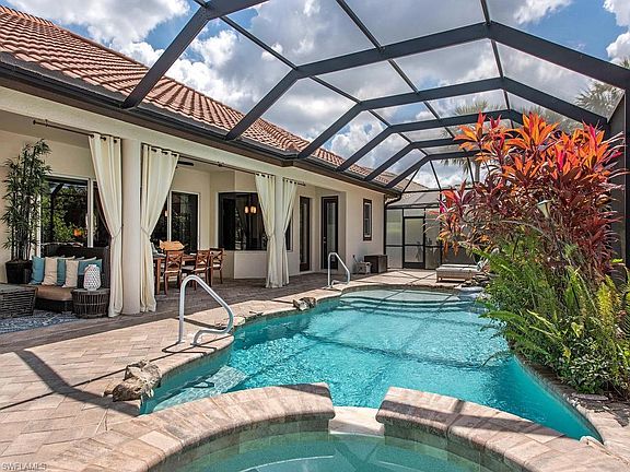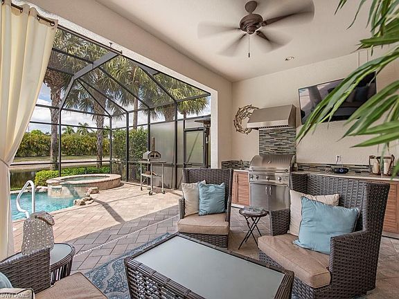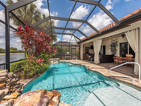 H.15811 This professionally decorated gorgeous home has many upgrades and it is being offered Furnished. Entertaining has never been easier with its expansive outdoor living space including heated pool/spa, and outdoor kitchen looking out to an extensive private lake view. It has a spacious great room and the open kitchen features granite counter tops,wood cabinets, a center island and stainless steel appliances. The large master bedroom with a large master bath featuring dual sinks, soaking tub and walk-in tiled shower. The Quarry offers a lifestyle like no other, which includes an impressive "Lake Lodge" with resort pool with beverage/food service, gym, lap pool, tennis courts, shuffleboard, bocce courts, brand new outdoor Tiki Bar, fire pit, restaurant/bar, Full Time Social Director,and over 500 acres of lakes that can enjoy boating & jet skiing (Docks available for lease). The Quarry offers a Private Golf Club (Not Mandatory) with 18 hole PGA LevelHurdzan Frye course (Memberships available).