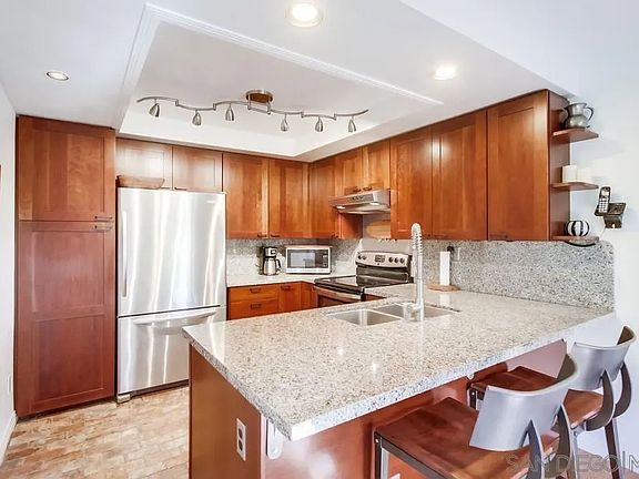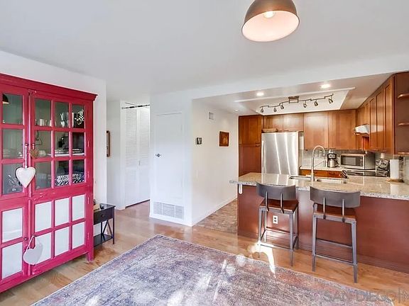 Discover your ideal retreat in Tierrasanta! Situated in the heart of sunny San Diego. With 1,360 sqft of thoughtfully designed living space, this exceptional 2-bedroom, 2.5-bathroom residence is a true gem. With a convenient 2-car garage, this home offers both comfort and practicality. The kitchen features custom cabinetry, stainless steel appliances, and granite counters, making meal preparation a breeze. Designer paint, wood flooring throughout, and views of the parklike community from every window create a warm and inviting atmosphere. The primary suite offers a haven of relaxation with an ensuite bath, while the second bedroom provides versatility for guests or a home office, complete with a walk-in closet and ensuite bathroom. Inside laundry and a half bath downstairs complete this well-designed townhome, offering convenience at every turn.
