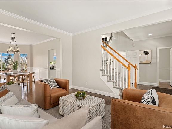 Wonderful opportunity to own this beautifully remodeled 2-story on a corner lot in a desirable Highland Ranch location! A charming front porch and incredible mature tree provides a great first impression. Recently updated, the welcoming interior delights with both formal and informal living spaces boasting hardwood floors, fresh neutral paint, and abundant natural light. Home chefs will love the newly remodeled kitchen with ample white cabinetry, sleek quartz countertops, stylish subway tile backsplash, stainless steel appliances including a desirable gas range, and extensive center eat-in island! A cozy gas-burning fireplace with surrounding built-in shelving and cabinets anchors the family room providing great ambiance. Open the sliding door to the extensive backyard deck to easily extend your indoor/outdoor living space. Upstairs, find 4 generous-sized bedrooms with plush new carpeting. The primary retreat with a dreamy walk-in closet and beautiful 5-piece en-suite bath with new easy-maintenance flooring. Additional living space can be found in the finished basement where you’ll find a versatile bonus room that would make a great work-from-home office with all the wonderful built-in cabinets, and an additional bedroom with nearby bath – ideal for guests’ privacy. The basement has a workshop wired for 220v appliances. New HVAC and new Smart thermostat. Great location in award-winning Douglas County Schools, community parks, shops and restaurants close by. This move-in-ready gem is a must-see and ready for you to call it home!