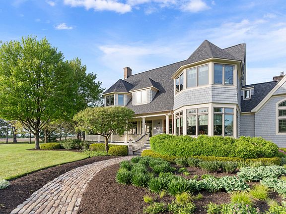 Craftsmanship you don't see everyday! Follow the winding concrete driveway over the stone bridge and through the park setting of your yard arriving at the doorstep of this beautiful Custom Designed Nantucket style home. Every room has well thought out details, *from tile, stone or marble selected for the bathrooms, *the herringbone patterns in the floors, *custom trim throughout, *the staircases are custom made solid oak- *custom iron hand rail frames the back stairway and *classic twisted balusters frame the front staircase along with the oak wainscoting. **The kitchen was redone in 2017 with Crown Point custom cabinetry, Super Premium Wolf appliances, subzero free standing 36" freezer and refrigerator- double oven one of which is a very trendy steam oven, Fischer and Paykel drawer style dishwasher, entertain at the massive island that overlooks the cozy family room or enjoy a quiet meal at the banquette seating area in the breakfast room. *Keep the prep mess out of the kitchen, in 2017 this amazing addition was completed, the 'Pantry', or second kitchen which is fully equipped with space, storage and appliances to get large or small meals done behind the scenes!! The 'pantry workroom' is perfectly positioned between the kitchen, formal dining room and patio which has 4" concrete slab with beautiful Pennsylvania Blue Stone on top, stone garden walls, lighted Pergola, gas line for future outdoor kitchen and limestone steps. **** You must see the Library, three season room, and formal dining room that complete the main level. On the second level are 4 bedrooms with amazing views across the countryside, the laundry room and access to the 3rd floor suite style bedroom, bathroom and a private lounge area. Some recent updates include: 50 year roof installed 2023, triple glazed windows, Cedar shingle siding was replaced and the 8ft custom front door was installed. ** The location of this home provides quick access to the Metra to head to Chicago, direct route west to I90 for quick trips to Madison, 15 minutes to the recreation destination of Lake Geneva and 5-10 minute rides to two of the areas famous supper clubs. This home deserves a walk through so you can truly appreciate the craftsmanship and detail in every room!