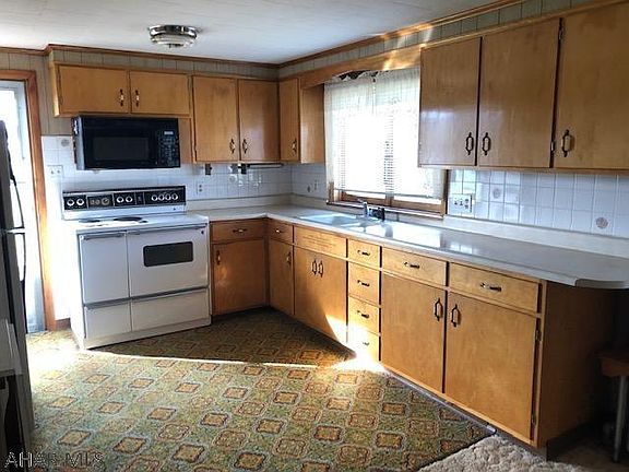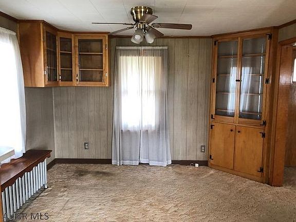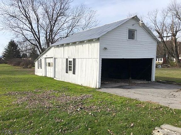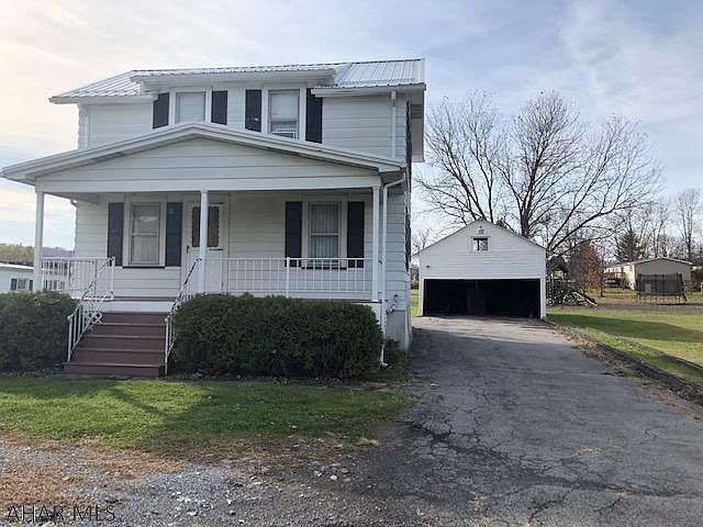 Fantastic mountain views from this 2 Bedroom 1 Bath home has good mechanics with a Rebuilt front Porch , NEW metal roof installed 2019, newer oil furnace, new well tank. There's a large 2 car garage with a large storage loft area also being on almost 1 acre of land this home has lots of potential. Just needs some updating inside. Seller will make no repairs - sold "As Is"